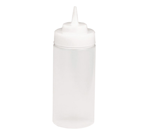 WideMouth™ Squeeze Bottle, 8 oz., 53mm opening, natural cone tip, dishwasher safe, soft polyethylene, clear, Made in USA, NSF (must be purchased in multiples of 36 each)