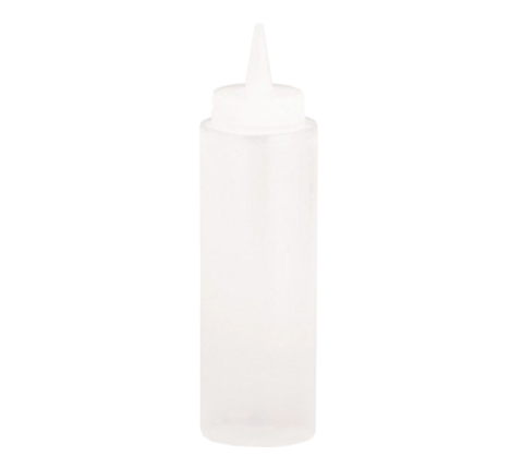 Squeeze Bottle, 8 oz., 38mm opening, natural cone tip, dishwasher safe, soft polyethylene PerfectFlex™, clear, Made in USA (must be purchased in multiples of 12 each)