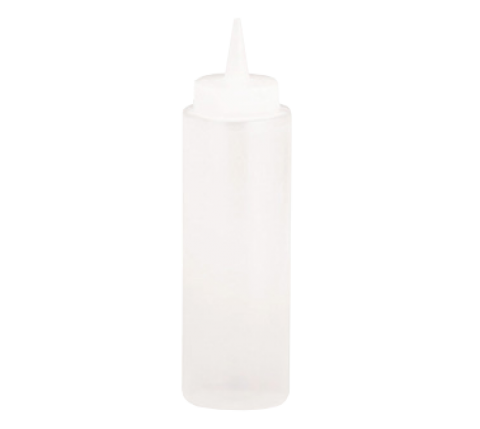 Squeeze Bottle, 8 oz., 38mm opening, natural cone tip, dishwasher safe, soft polyethylene PerfectFlex™, clear, Made in USA (must be purchased in multiples of 72 each)