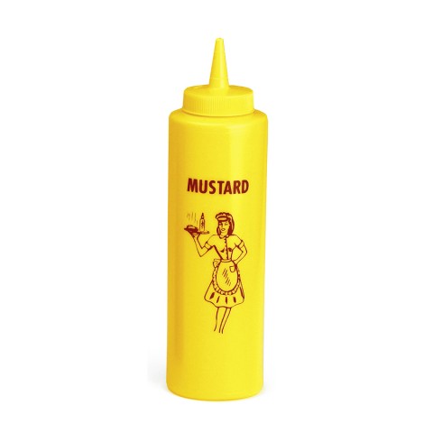 Nostalgia Squeeze Bottle, 12 oz., 38mm opening, natural top, single cone tip, mustard, dishwasher safe, yellow (must be purchased in quantities of 12 each)