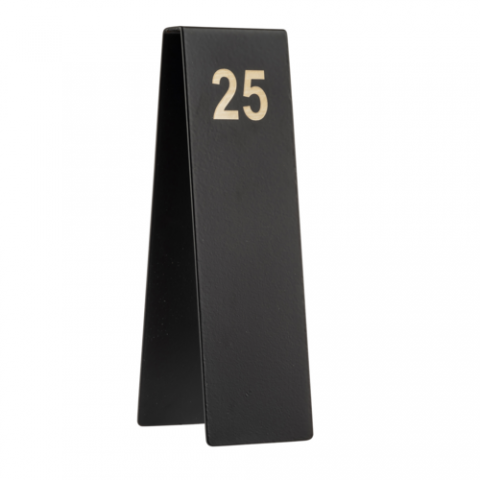 Number Tents, 2" x 2.75" x 6.75", 1-25, 200 Series powder coated stainless steel (over steel,black), black (1 set minimum order)