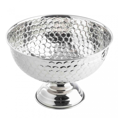 Hive Collection Punch Bowl, round, 15-1/2" dia. x 10-1/2"H, mirror/ honeycomb pattern, stainless steel (14-1) (1 each minimum order)