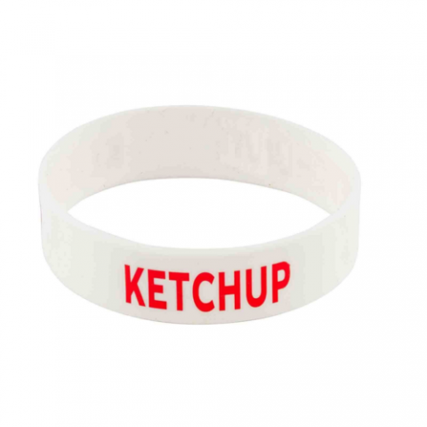 Bottle Band, "Ketchup", 2-1/2" x 2-1/2" x 3/4", silicone, white with red lettering (1 each minimum order)