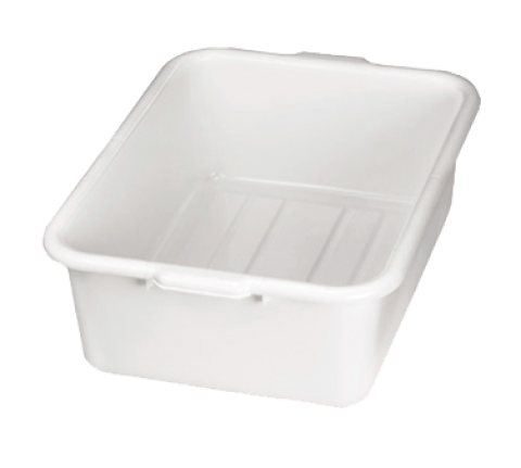 Tote Box, 21-1/2" x 15-3/4" x 7", pebbled finish outside, reinforced handles, stackable, dishwasher safe, high density polyethylene, white, Made in USA, FDA approved, NSF (must be purchased in multiples of 12 each)