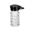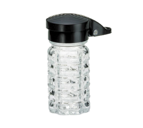 Salt/Pepper Shaker, 1-1/2 oz., 1-9/16" dia. x 3-9/16"H, glass, dishwasher safe, moisture proof ABS black top (must be purchased in multiples of 24 each)