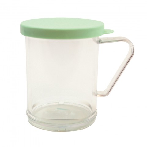Dredge/Shaker, 10 oz., for fine ground spices, poly with handle & green snap tight plastic lid, dishwasher safe, Made in USA, BPA free (must be purchased in multiples of 12 each)