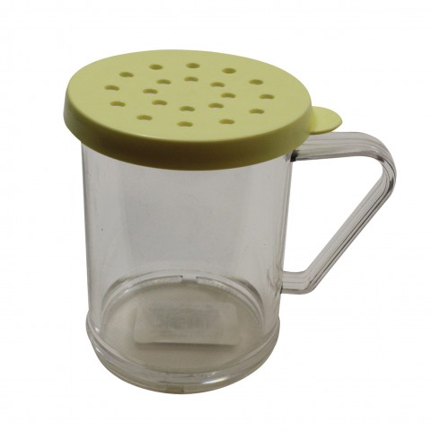 Dredge/Shaker, 10 oz., for cheese, poly with handle & yellow snap tight plastic lid, dishwasher safe, Made in USA, BPA free (must be purchased in multiples of 12 each)