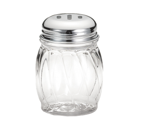 Cheese Shaker, 6 oz., swirled glass jar (dishwasher safe), chrome plated slotted top (hand wash only) (fits rack model numbers 260R, 260RBK, 406-2R and 406-3R) (must be purchased in multiples of 12 each)