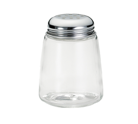 Cheese Shaker, 8 oz., modern glass, dishwasher safe, chrome plated perforated top (fits rack model number 1370R) (must be purchased in multiples of 12 each)