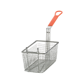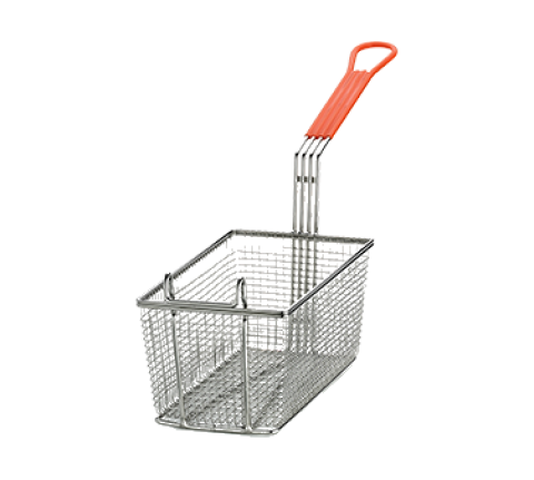 Fry Basket, 24-1/2" x 6-3/8" x 11-1/2", rectangular, mesh, orange cool-to-touch PVC handle, hand wash only, nickel plated (1 each minimum order)