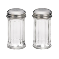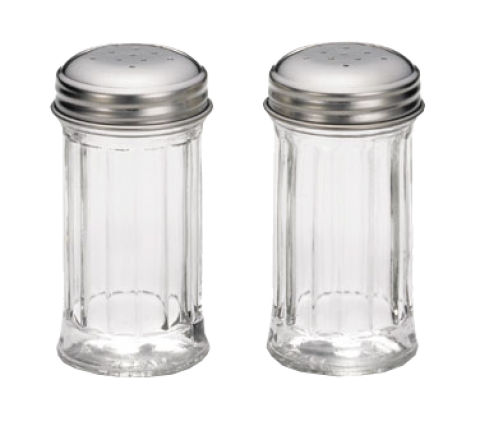 Salt/Pepper Shaker, 2 oz., 1-15/16" dia. x 3-5/8"H, fluted glass, dishwasher safe, stainless steel tops (must be purchased in multiples of 24 each)