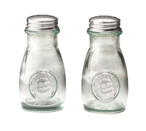 Authentic Collection™ Shaker Set, (2) 4 oz. recycled green tint glass jars (dishwasher safe), stainless steel tops (hand wash only) (must be purchased in multiples of 24 each)