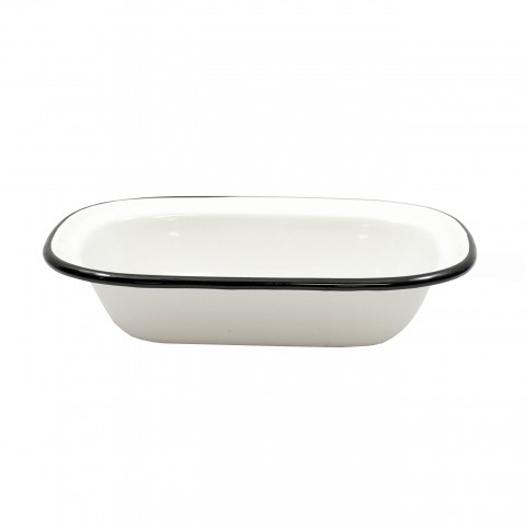 Enamelware Collection™ Serving Pan, 18 oz., 7-3/4" x 5-3/4 "x 1-3/4", rectangular, dishwasher safe, vitreous porcelain enamel coated steel, creamy white with black rim (1 each minimum order)