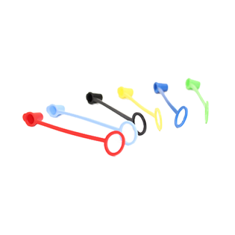 Tethered Cap, fits all standard cone tip tops (excluding wide cone-tip openings), dishwasher safe, assorted colors include (2) of each: yellow, blue, red, black, light blue, and light green (12 per pack) (1 pack minimum order)