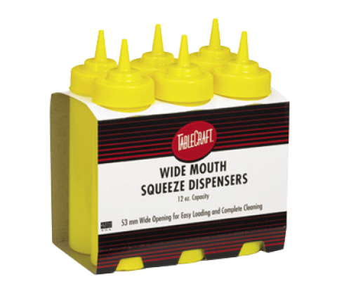 Cash & Carry WideMouth™ Squeeze Bottle, 24 oz., 63mm opening, mustard, dishwasher safe, yellow, NSF, Made in USA (display merchandise pack, 6 per pack) (must be purchased in multiples of 8 packs)