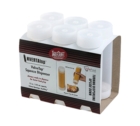 Cash & Carry Invertatop™ Squeeze Dispenser, 12 oz., Valve Top™ 53mm opening, dishwasher safe, clear, NSF (display merchandise pack, 6 per pack) (must be purchased in multiples of 8 packs)
