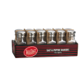 Cash & Carry Salt/Pepper Shaker, 3 oz., 1-1/2 x 4"H, square glass, dishwasher safe, stainless steel tops (display merchandise pack, 12 per pack) (must be purchased in multiples of 4 packs)