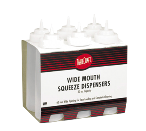 Cash & Carry WideMouth™ Squeeze Bottle, 32 oz., 63mm opening, dishwasher safe, clear, NSF Made in USA (display merchandise pack, 6 per pack) (must be purchased in multiples of 6 packs)