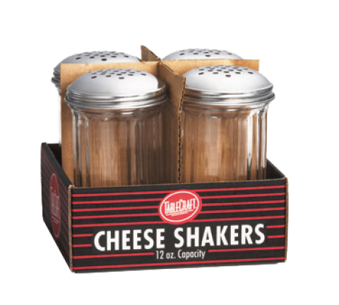 Cash & Carry Cheese Shakers, 12 oz., fluted glass, dishwasher safe, stainless steel perforated tops (display merchandise pack, 4 per pack) (must be purchased in multiples of 4 packs)