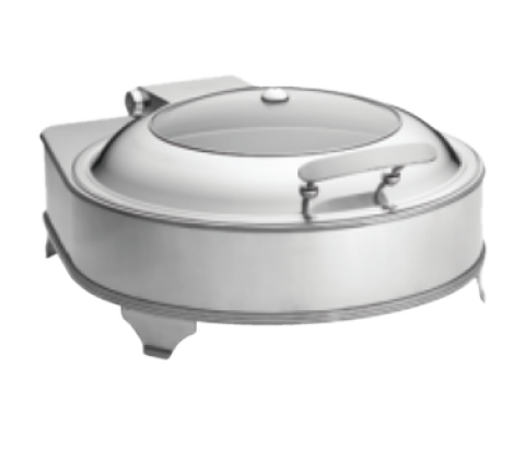 Electric Chafer Dish with Stand, 6 qt. (6-1/2 qt. capacity), 20-1/2" x 18-1/2" x 13", round, drop-in, slow-close hinged cover with viewing window, condensation catch, steam vent, steam pan, water basin, comes with 700 watt electric heater (CW30157), dishwasher safe, 2.0 mm polished stainless steel frame (1 each minimum order)