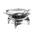 Fuel Chafer Dish with Stand, 6 qt. (6-1/2 qt. filled capacity), 17-1/4" x 19-1/2" x 12-1/4", round, slow-close hinged cover with viewing window, condensation catch, steam vent, (1) 2-1/2" steam pan, water basin, fuel holder, fuel powered, dishwasher safe, polished stainless steel finish (1 each minimum order)