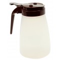Syrup Dispenser, 10 oz., modern design, dishwasher safe, brown ABS plastic top, BPA free polypropylene, transparent (must be purchased in multiples of 12 each)