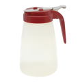 Syrup Dispenser, 10 oz., modern design, dishwasher safe, red ABS plastic top, BPA free polypropylene, transparent (must be purchased in multiples of 12 each)