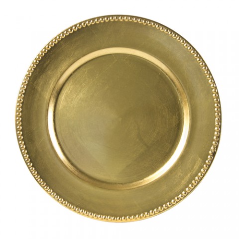 Charger Plate, 13", round, hand wash recommended, beaded, acrylic, lacquer gold (sold in case pack ONLY) (Stocked)