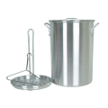 Turkey Fry Pot, 26 quart capacity, with base strainer/rack, poultry hanger, and lid, aluminum, mirror-finish
