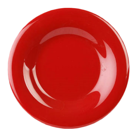 Plate, 9-1/4" dia., round, wide rim, break-resistant, dishwasher safe, BPA free, melamine, pure red, NSF