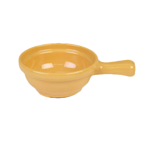 Soup Bowl, 10 oz., 6-3/4" x 4-1/4" x 2" deep, with handle, break-resistant, dishwasher safe, melamine, yellow, BPA free, NSF