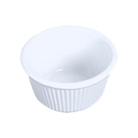 Ramekin, 1-1/2 oz. capacity, 2-1/2" dia., round, fluted, break-resistant, dishwasher safe, BPA free, melamine, white, NSF