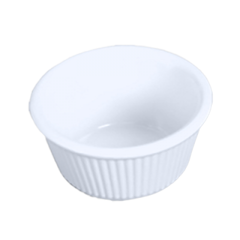 Ramekin, 3 oz. capacity, 3-1/8" dia., round, fluted, break-resistant, dishwasher safe, BPA free, melamine, white, NSF