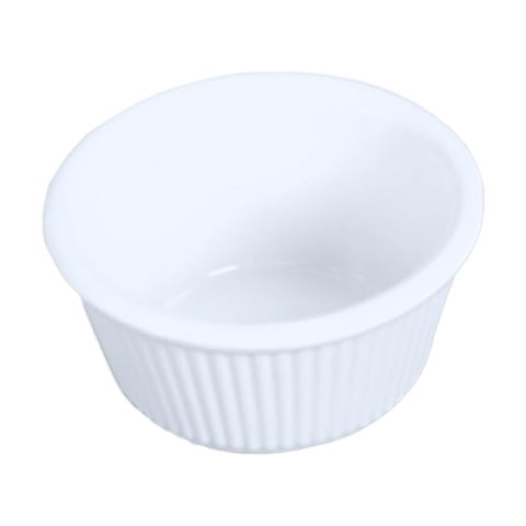 Ramekin, 4 oz. capacity, 3-3/8" dia., round, fluted, break-resistant, dishwasher safe, BPA free, melamine, white, NSF