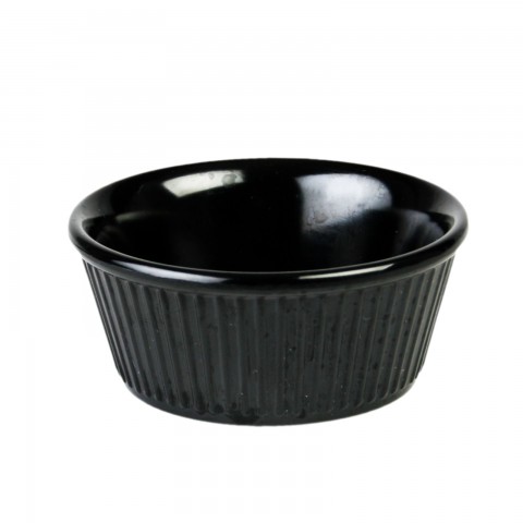 Ramekin, 3-1/2 oz. capacity, 3-3/8" dia., round, fluted, break-resistant, dishwasher safe, BPA free, melamine, black, NSF