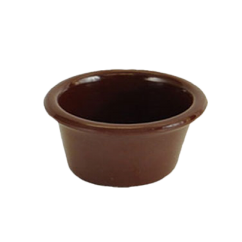 Ramekin, 6 oz. capacity, 3-7/8" dia., round, smooth, break-resistant, dishwasher safe, BPA free, melamine, chocolate, NSF