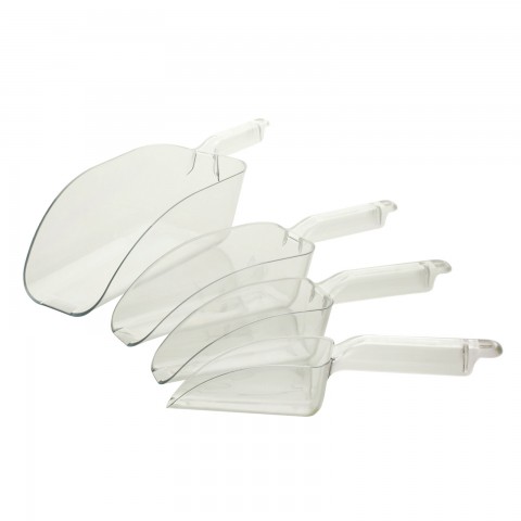 Ice Scoop, 24 oz., beveled tip, shatter-resistant, hanging hole, polycarbonate, clear, NSF (12 each minimum order)