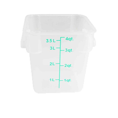 Food Storage Container, 4 quart square, stain & chemical resistant, -40° to 160° F temperature range, polypropylene, translucent, NSF (6 each minimum order)