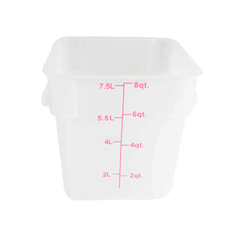 Food Storage Container, 8 quart square, stain & chemical resistant, -40° to 160° F temperature range, polypropylene, translucent, NSF (6 each minimum order)