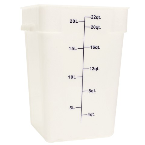 Food Storage Container, 22 quart, square, scratch & break resistant, -40° to 160° F temperature range, polypropylene, white, NSF(6 each minimum order)