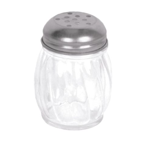 Cheese Shaker, 6 oz., 2-7/8" dia. x 3-9/16"H, swirled polycarbonate base, stainless steel perforated top, clear