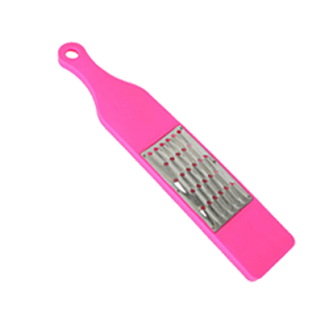 Grater, 10-1/2" x 2-1/2", small, manual, riveted stainless steel grater, hanging hole, plastic handle (12 each minimum order)