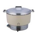 Rice Cooker, LP gas, 55 cup uncooked rice capacity, 23" x 18-1/2" x 17-3/4", automatic simmers, Piezo pilot ignition, accurate and dependable thermostat, flame failure safety device, durable handle, built-in regulator, enamel outer casing with aluminum cook pot, 1/2" NPT female, 34,000 BTU, Rinnai®, NSF, CSA Star