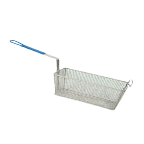 Fry Basket, 13-3/8" x 5-3/4" x 5-3/4", rectangular, front hook, wire mesh, blue handle, nickel plated