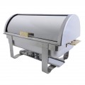 Chafer, 8 quart, roll-top cover, dripless water pan, 2 fuel holders, gold handles, stainless steel, mirror-finish
