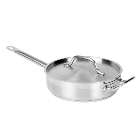 Induction Saute Pan, 5 quart, with cover, welded handle with helper handle, encapsulated base, 18/8 stainless steel, NSF