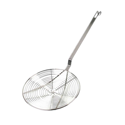 Skimmer, 9" dia., 22" OA length, round, spiral wire, hooked handle, nickel plated (12 each minimum order)