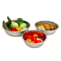 Chinese Style Colander, 15" dia, large perforations, stainless steel, button feet, wide rim