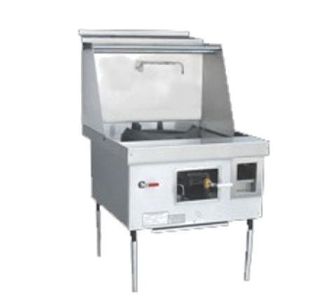 EcoDeck Wok Range, gas, (1) chamber, waterless (no constant flow of cooling water required), ball valve & push button activated water wash bar, Chinese swing faucet, L-shaped gas valve handle per burner, stainless steel 8" work/plating shelf, 5" front access integral with sink, 3-pipe rack, removable strainer basket, drip trays, legs with adjustable bullet feet, ETL, NSF
