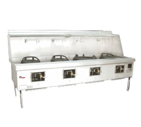 MasterRange® Wok Range, gas, (4) cast iron brick lined chamber, (4) swing faucets mounted on 25" backsplash, knee "L" lever gas handle, painted steel top deck and chassis sides, ETL NSF
